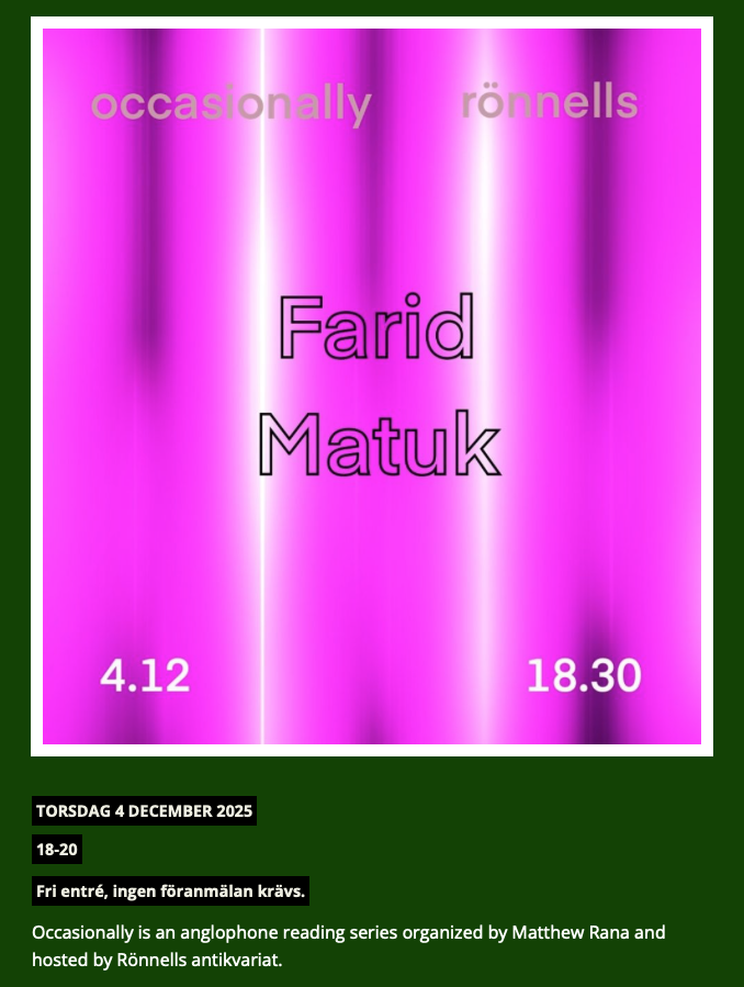 Reading & Interview: Occasionally #6, hosted by Matthew Rana