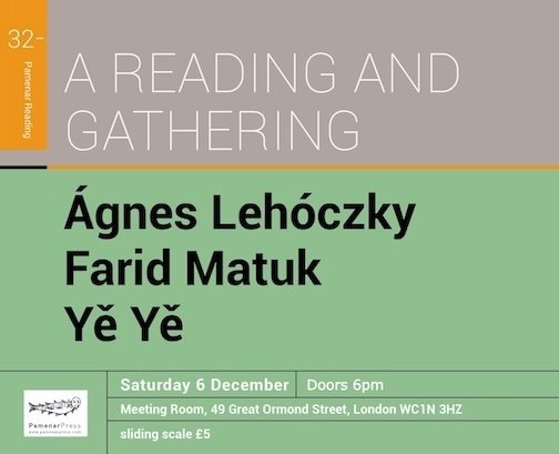 Pamenar Press Reading with Ágnes Lehóczky, Farid Matuk, and Yě Yě